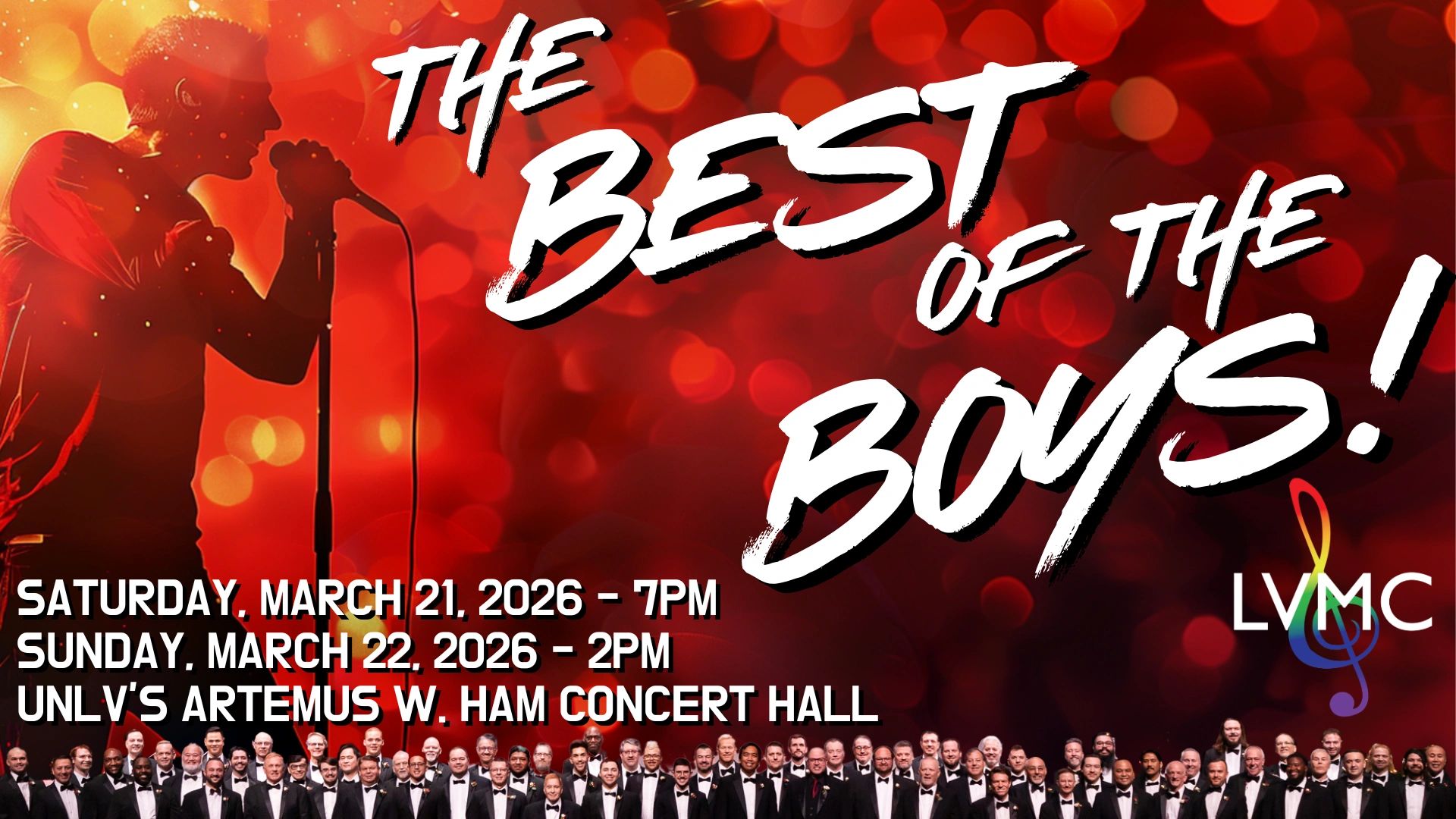 Come celebrate the most iconic gents and bands to ever take the stage! We promise to bring the party in a high-energy concert spectaculare with everything from throwback chart-toppers like Billy Joel and Queen, to current superstars like Justin Timberlake and Imagine Dragons. Join our 100 singers and sensational dancers in this rocking tribute honoring over eight decades of musical excellence! UNLV’s Artemus W. Ham Concert Hall will rock out with something for everyone in this epic musical celebration.